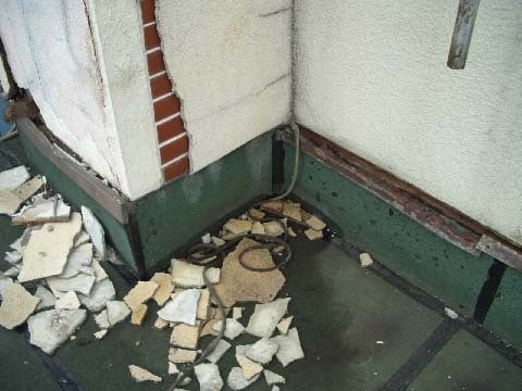 手抜きの防水補修跡が