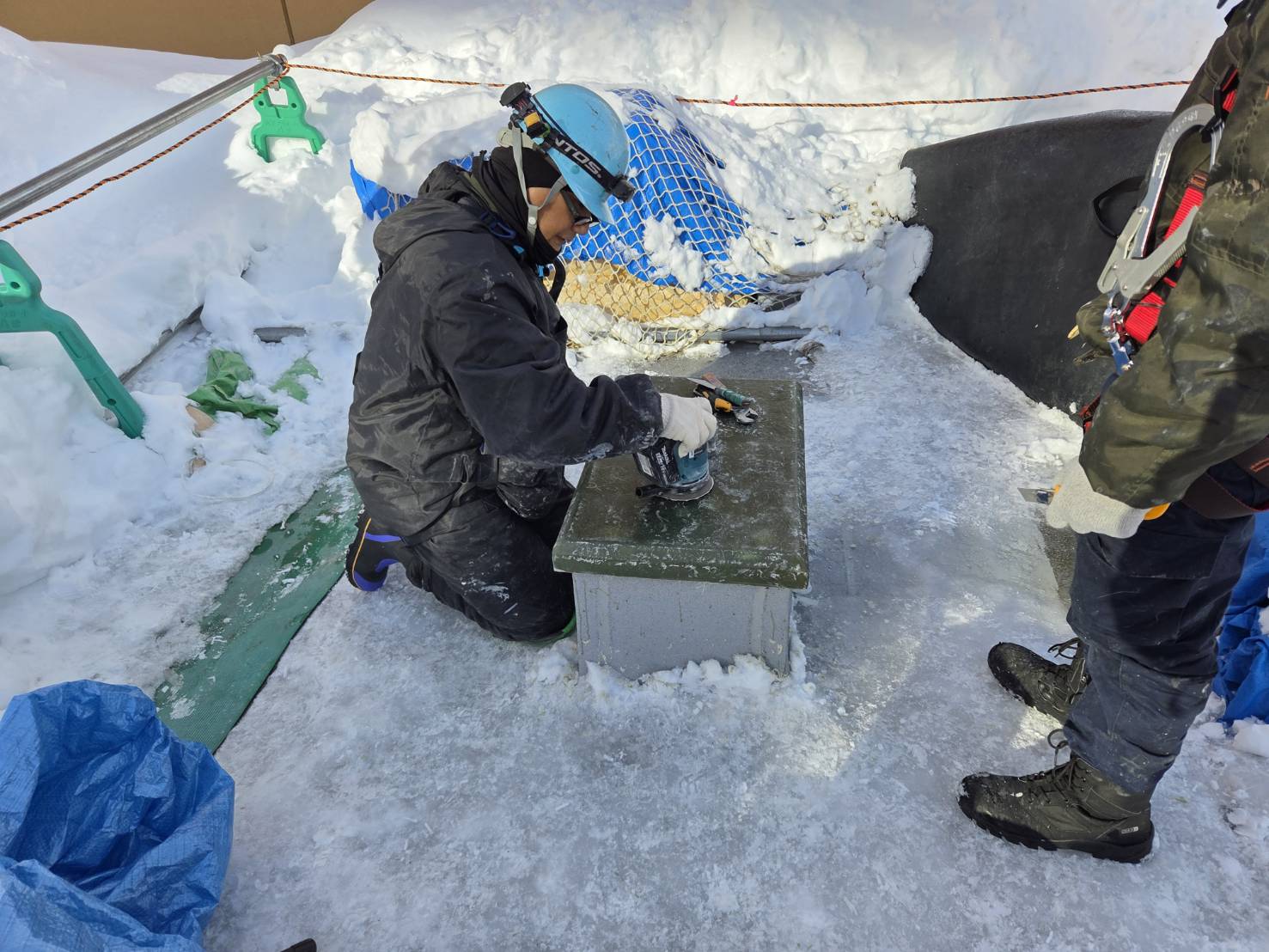 立上を貼っている後藤サン。